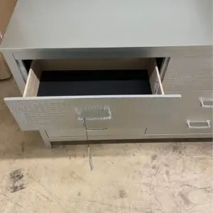COOL SILVER: The silvertone metallic finish immediately adds luxurious class to your space. Plus, the chrome-tone pulls with encrusted faux crystals add to the high-drama look