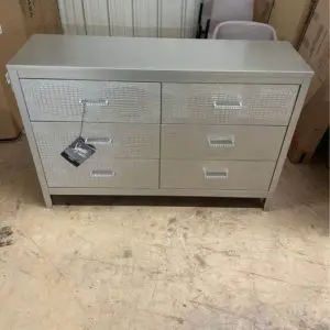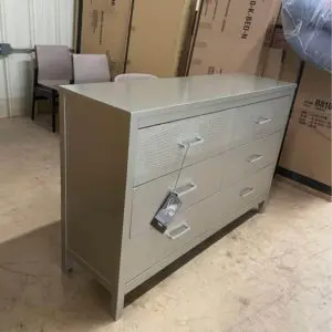CONTEMPORARY DRESSER: Bring upscale glam to your room with faux shagreen drawer fronts and off-the-ground elegance. What a lavish, showstopper look that’s sure to please