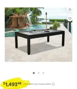 Bring your family and friends together with the Panama Jack Indoor/Outdoor Billiards Table. With its sleek design and durable construction, this billiards table is the perfect addition to any indoor or outdoor living space. It features a black Polywood slate and Sunbrella fabric for long-lasting durability, ensuring that you can enjoy countless games for years to come. The set includes a set of billiard balls, (1) black Billiards Rack/Triangle, (1) black Easy-Clean Table Brush, (2) Cue Chalk, (2) Composite Billiard Cues, and (1) Protective Cover, providing everything you need to set up and start playing. The rubber bumpers ensure that the game runs smoothly every time. Elevate your game room or outdoor living space with the Panama Jack Billiard Table and create lasting memories with your loved ones.